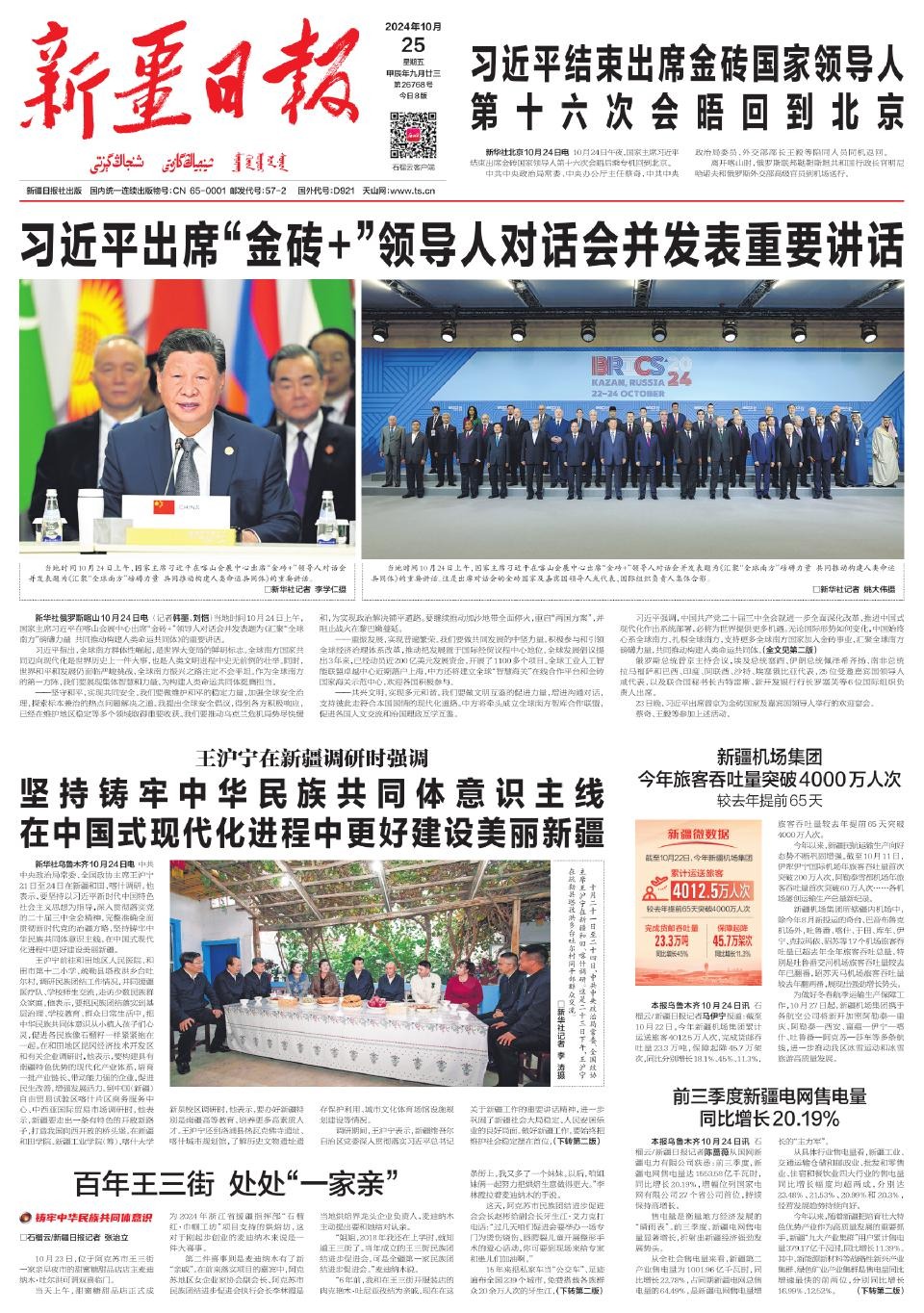 “時代的風浪越大,我們越要勇立潮頭”——習近平主席赴俄羅斯喀山出席金磚國家領導人第十六次會晤紀實